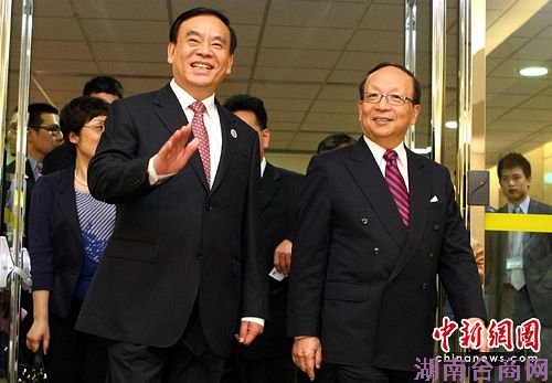 6月9日上午,浙江省长吕祖善率浙江省代表团抵达台湾,中国国民党副主席蒋孝严、台湾“工业总会”理事长陈武雄等到桃园机场迎接。中新社记者 宋吉河 摄 中新网6月9日电 据台湾《联合报》报道,浙江省经贸文化访问团抵台,浙江省长吕祖善9日中午抵达桃园国际机场,展开为期8天的台湾参访行程、经贸、旅游与文化交流合作。10日将在圆山饭店举行“2010台湾浙江经贸文化合作论坛”,浙商代表阿里巴巴董事局主席马云将在论坛发表演讲,裕隆董事长严凯泰也出席演讲。