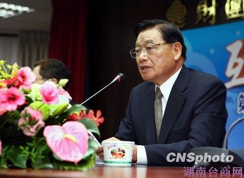 6月27日,台湾海基会就两会领导人第5次会谈在台北举行行程记者会,海基会董事长江丙坤在会上介绍情况并回答记者提问。 中新社发 宋吉河 摄
