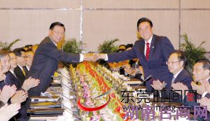 东莞时间网讯 海协会会长陈云林与海基会董事长江丙坤29日下午在重庆正式签署两岸经济合作框架协议(ECFA)及两岸知识产权保护合作协议。