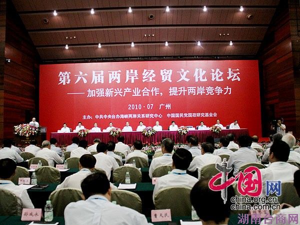 由中共中央台湾工作办公室海峡两岸关系研究中心与中国国民党国政研究基金会共同主办的第六届两岸经贸文化论坛,于2010年7月8日至11日在广东省广州市举行。