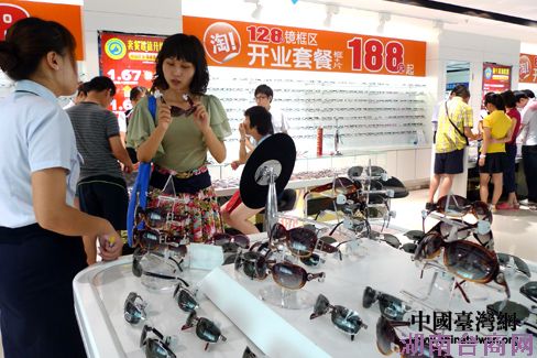 开业首日,大部分眼镜都给出了较大幅度折扣(中国台湾网 李徽 摄)