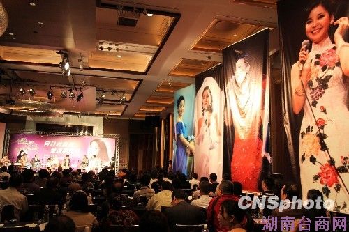 5月7日,一代巨星邓丽君逝世15周年前夕,海峡两岸、香港、日本等艺文界知名人士聚首台北,以连办4场纪念研讨会方式忆谈、缅怀邓丽君。图为台北君悦大饭店现场,一侧悬挂邓丽君的大幅照片,伊人音容宛在、楚楚动人。 中新社发 董会峰 摄