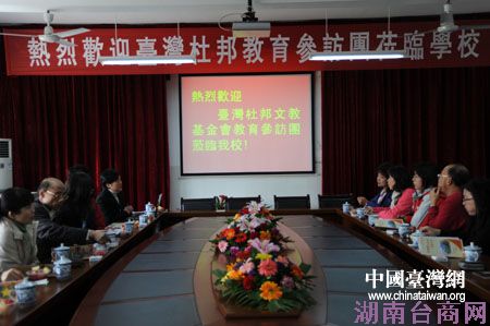 中国台湾网4月21日长沙消息 4月15日,台湾桃园县观音乡财团法人杜邦文教基金会教育参访团一行18人在谢仁山执行长的带领下,来到长沙市两所百年名校考察观摩中小学教学活动和教学设施,并进行了座谈,交流分享两地教学经验和心得体会。