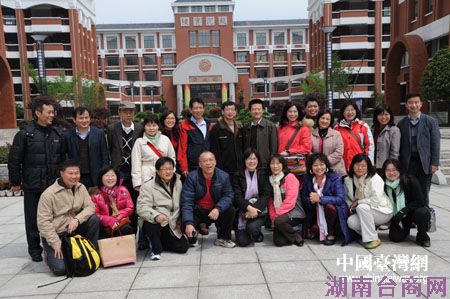 台湾嘉宾在长郡双语实验中学教学楼前合影留念