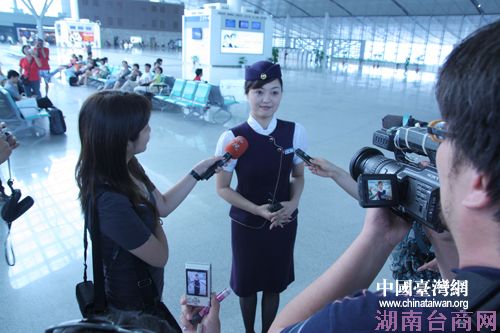 武广高铁长沙南站的工作人员,以其美丽的笑容和漂亮的制服吸引了两岸媒体的诸多镜头。(中国台湾网 杨丽 摄)