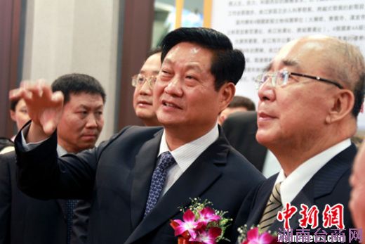 9月14日,陕西省代省长赵正永率团在台北出席2010台湾陕西周活动。当日,中国国民党荣誉主席吴伯雄应邀参加“陕西风情节”活动,赵正永为吴伯雄作导览。中新社记者 刘舒凌 摄