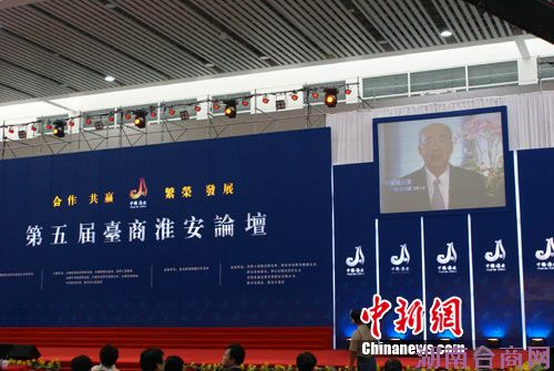 中国国民党荣誉主席吴伯雄通过视频遥祝台商淮安论坛开幕。作 者:杜国峰