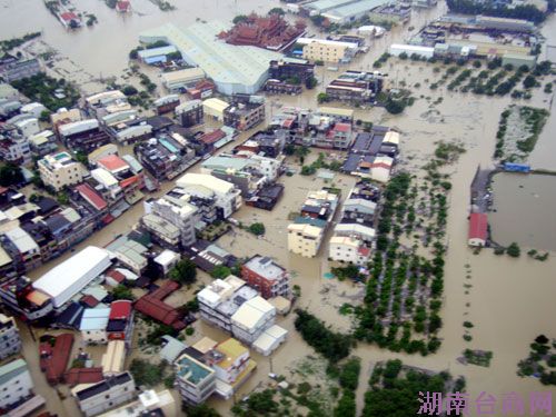 “凡亚比”台风肆虐,高雄、屏东成水乡,台湾空中勤务总队20日上午出动直升机勘灾,图为高雄县弥陀乡的情况。(“中央社”图) 中新网9月21日电 据台湾媒体报道,台风“凡那比”(大陆称“凡亚比”)带来的豪雨造成高雄、屏东地区大淹水,恶水更夺走6条人命,全台仅农、工业损失超过56亿元新台币,初估大高雄地区有上百万人饱受水灾肆虐之苦。