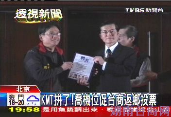 台湾TVBS的报道称,国民党北京后援会的投票服务中心已经选好地点,准备下星期一开张。该中心的主要任务,就是要帮忙北京台商订机票,确保在台湾“五都”选举时想投票的人能回台湾。