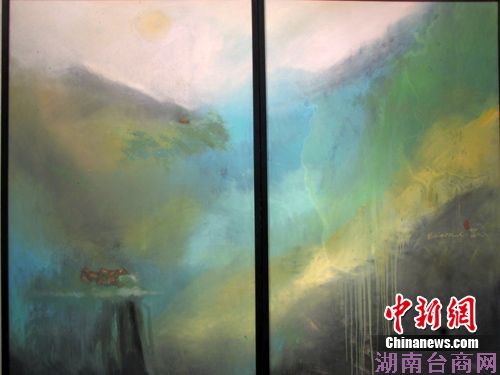 在浙江西子博物馆记者见到了陈欢先生,他打趣地说,在台湾别人都说他是“台湾的吴冠中”,“我的画有一种东方的禅意。”陈欢说,他采用的是当代结合传统水墨画的意境,而且摆脱了纯种稠密的油彩,用一种轻薄的手法自由地尽情流动于画面之上。