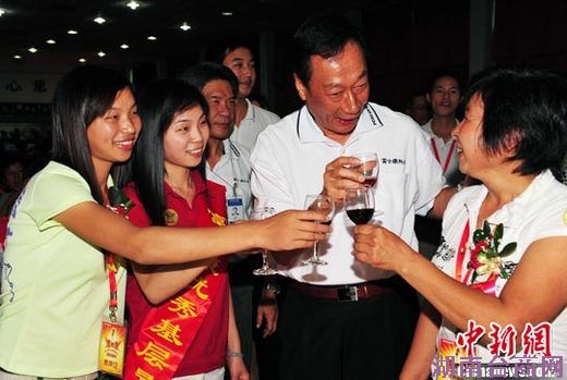 中新网10月18日电 据台湾《经济日报》报道,台湾鸿海集团今年扩大“富士康之星—2010优秀基层员工”活动举办,鸿海集团总裁郭台铭不但亲自授奖,还宴请了140名优秀基层员工及家属。他表示,能够参加表扬富士康最优秀员工的聚会,是他收到最好的60岁生日贺礼、是一个宝藏。