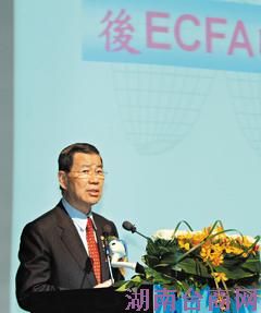 萧万长出席“2010资本市场论坛”,以“后ECFA时代台湾经济之展望”为题,进行专题演讲。 图片来源:联合晚报