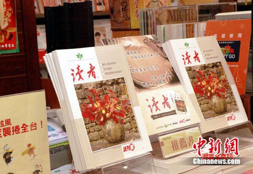 据悉,在台湾发行的《读者》杂志与大陆发行的版本内容基本一致,但将上、下半月刊合为月刊,每本售价为新台币80元。《读者》杂志1981年3月创刊,在大陆发行半月刊,每期近500万份,其发行量已连续13年领跑大陆期刊界,位居大陆和亚洲第一位,世界综合类期刊第三位。(记者 黄少华)