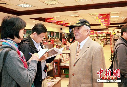 台湾《读者》杂志发行人吴治亚在台北一家书店内接受媒体采访。
