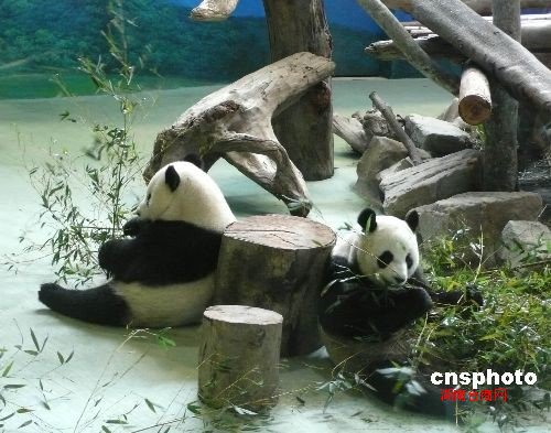赠台大熊猫“团团”和“圆圆”资料图。 中新社发 路梅 摄