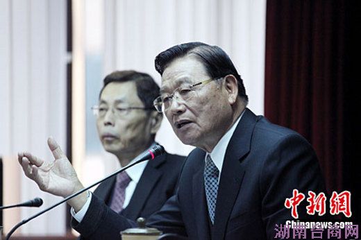 12月17日,海峡交流基金会在台北就两岸两会第六次会谈举行会前记者会。海基会董事长江丙坤介绍了此次会谈的相关安排。中新社记者 黄少华 摄