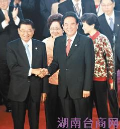 六次陈江会登场,海协会会长陈云林(右)昨天抵达台北圆山饭店,海基会董事长江丙坤(左)出面迎接。