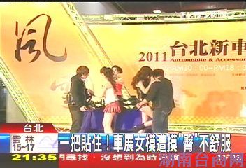 图片来源:台湾TVBS电视台 据台湾TVBS电视台报道,2010年台北车展今(24)日举行,主办方为炒热车展气氛,特别邀请台湾几位美胸皇后到场,并与粉丝展开互动。但有台湾美胸皇后称号的刘伊心事后向媒体控告,她感觉“不太舒服”,因为许多男粉丝的手一遍一遍的紧贴她的臀部。
