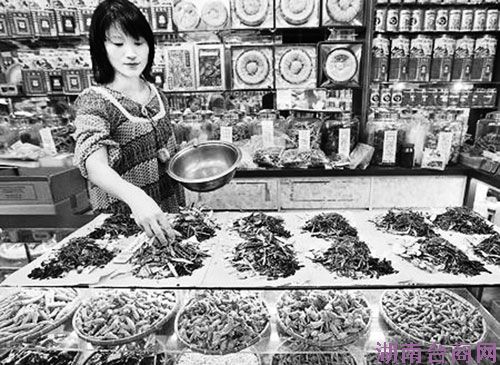 台湾90%的中药从大陆购买,图为台北迪化街中药商正在抓中药